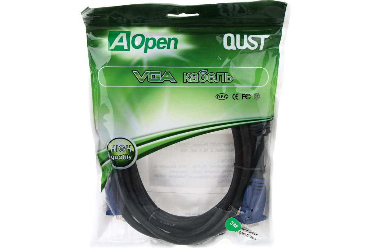 Технические характеристики AOpen/Qust монитор-SVGA card 15M-15M 3м 2 фильтра ACG341AD-3M