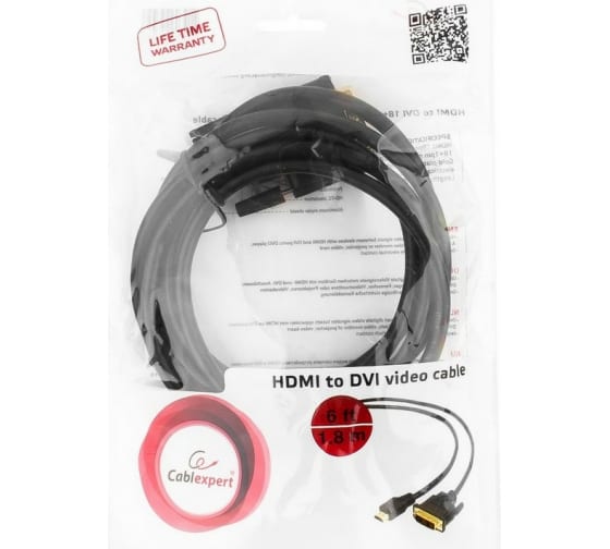 Технические характеристики Cablexpert HDMI-DVI 19M/19M, 1.8м, single link, черный CC-HDMI-DVI-6
