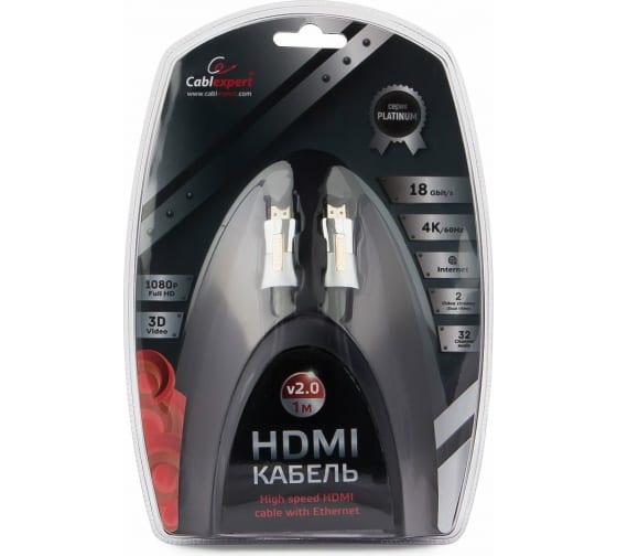 Технические характеристики Cablexpert Platinum HDMI 1м v2.0 M/M позолоченные разъемы, металлический корпус, ферритовые кольца CC-P-HDMI01-1M