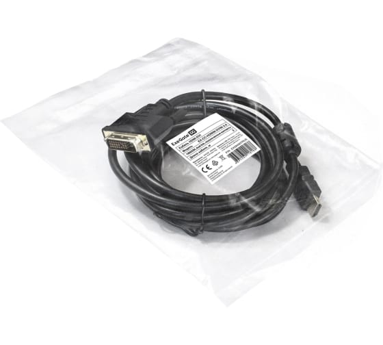 Технические характеристики ExeGate HDMI-DVI EX-CC-HDMIM-DVIM-3.0 19M 25M, dual link, 2 фильтра, 3м, позолоченные контакты 284907
