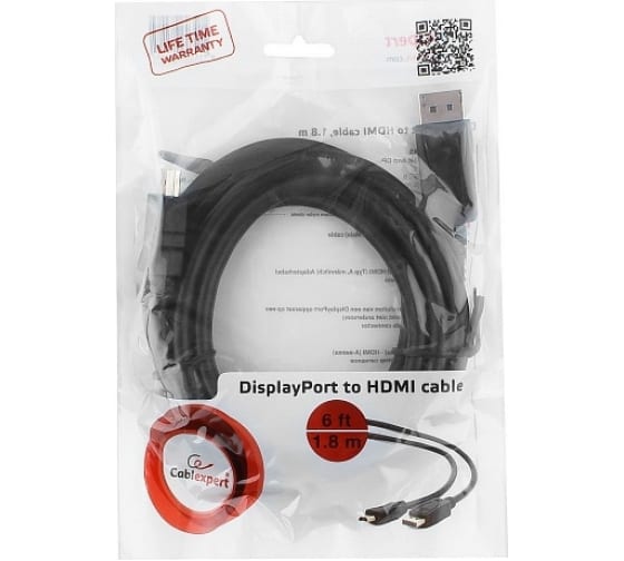 Технические характеристики Cablexpert DisplayPort-HDMI, 18м, 20M/19M, черный CC-DP-HDMI-6