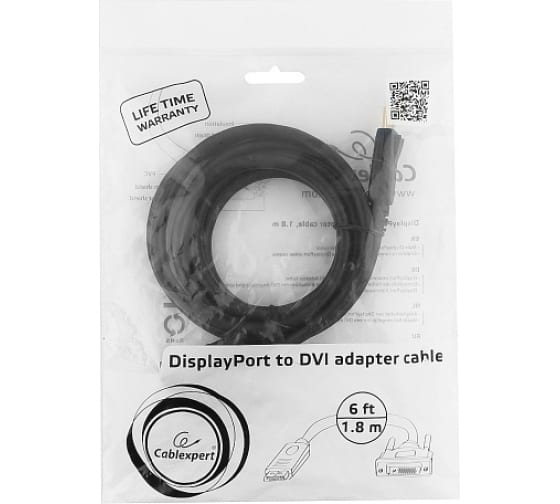 Технические характеристики Cablexpert DisplayPort-DVI 1.8м, 20M/25M, черный CC-DPM-DVIM-6