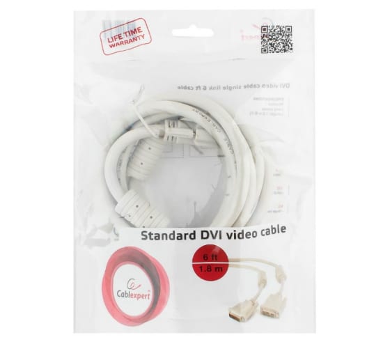 Технические характеристики Cablexpert DVI-D, single link, 19M/19M, 1.8м, серый, экран, ферритовые кольца CC-DVI-6C