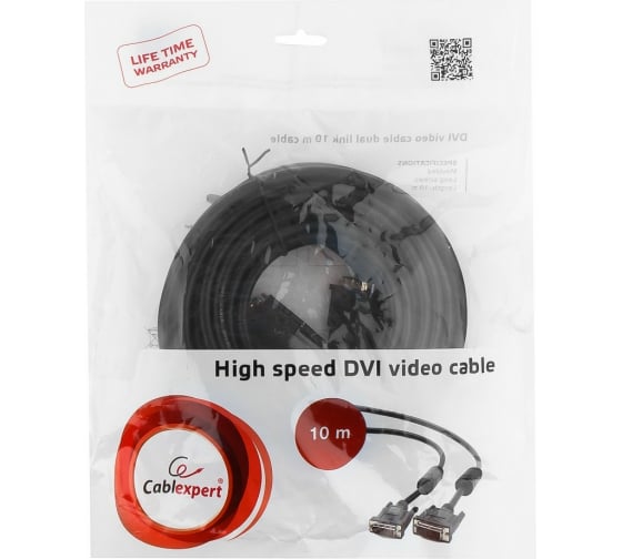 Технические характеристики Cablexpert DVI-D dual link, экранировка, ферритовые кольца, 25M/25M, 10м черный CC-DVI2-BK-10M