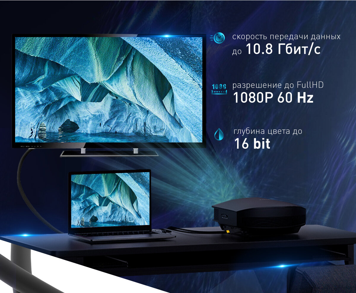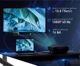 Версия кабеля DisplayPort v1.2 10.8Гбит/с, 1080p