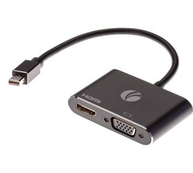 Переходник Mini DisplayPort M - HDMI F и VGA F предназначен для подключения устройств с разъемом Mini DisplayPort к HDMI и VGA устройствам.