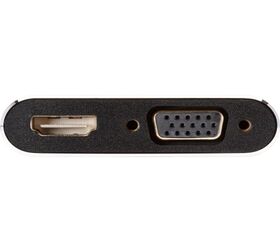 Обратите внимание: Поддерживается только один выходной видео разъем переходника, приоритет у HDMI, следующий за ним разъем VGA.