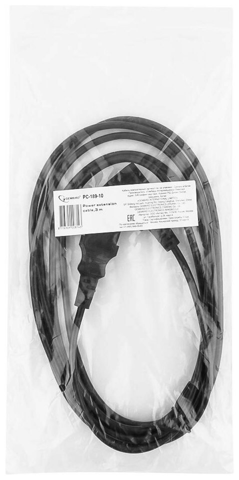 Кабель питания сист.блок-монитор Cablexpert PC-189-10, 3.0м, C13-C14, 6А, черный, с заземлением (UPS)