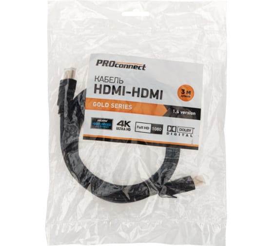 Кабель HDMI 1.4 PROCONNECT Gold, 4К, 3 метра 17-6205-6 предназначен для передачи цифровых видеоданных высокого разрешения и многоканальных цифровых аудиосигналов с защитой от копирования.