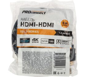 Кабель HDMI 1.4 PROCONNECT Gold, 4К, 5 метров 17-6206-6 предназначен для передачи цифровых видеоданных высокого разрешения и многоканальных цифровых аудиосигналов с защитой от копирования.