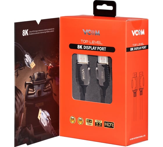 Соединительный кабель VCOM displayport v1.4, 8k 60hz, 2m, медь CG634-2M служит для телекоммуникационной передачи данных через интерфейс DP устройств к материнской плате через DP 20-pin Тип-А разъем, со специальными соединительными разъемами DP 20-pin Тип-А.