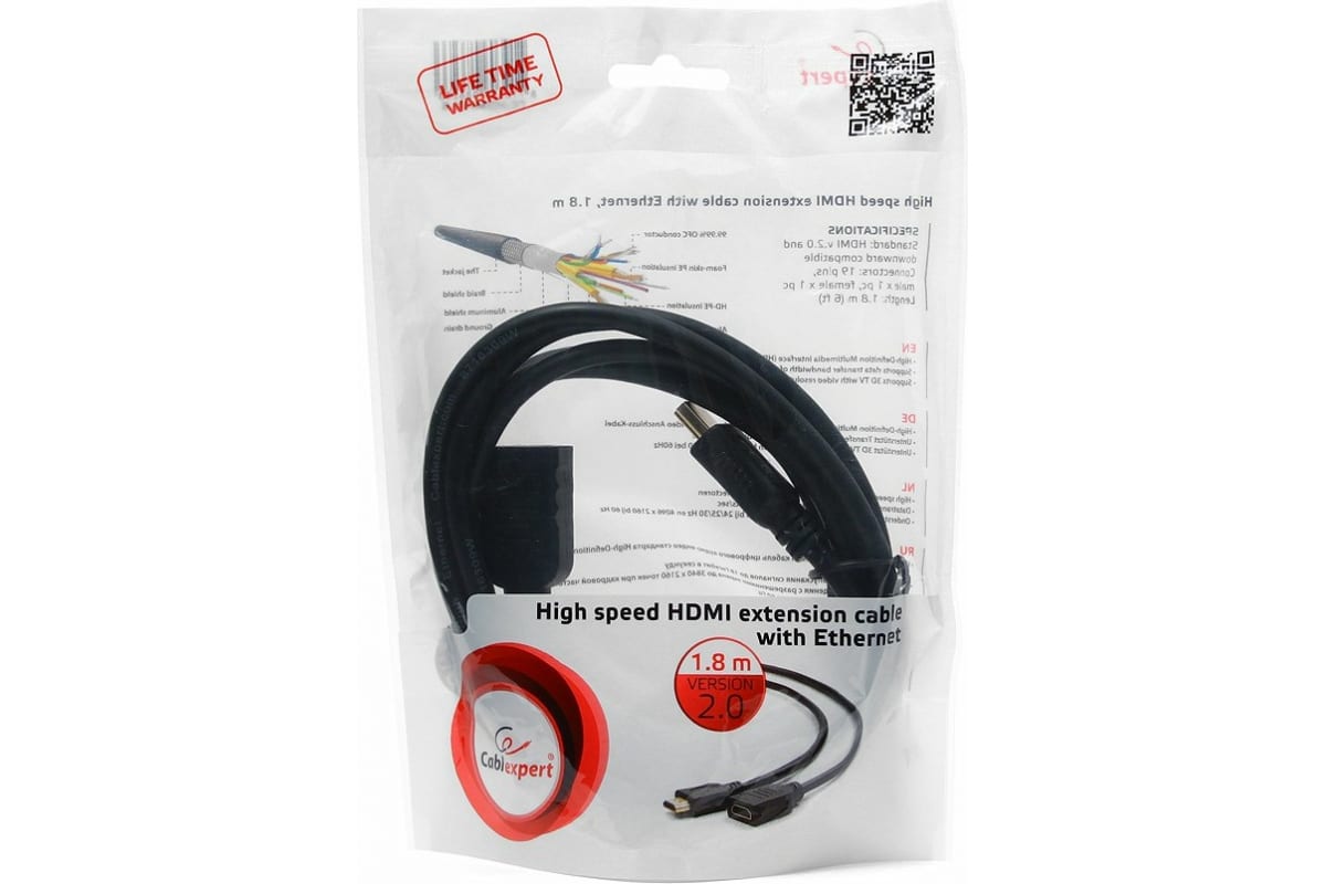Технические характеристики Cablexpert HDMI, 1.8м, v2.0, 19M/19F, черный CC-HDMI4X-6