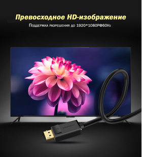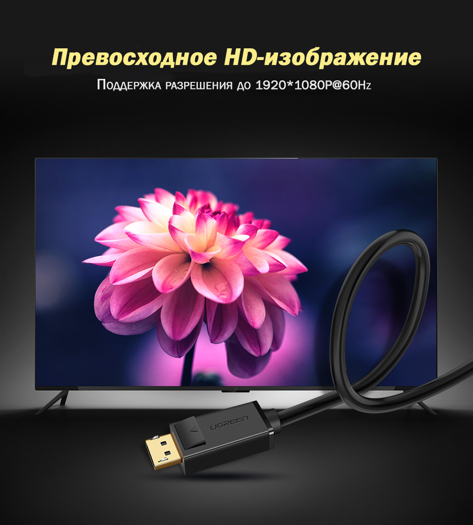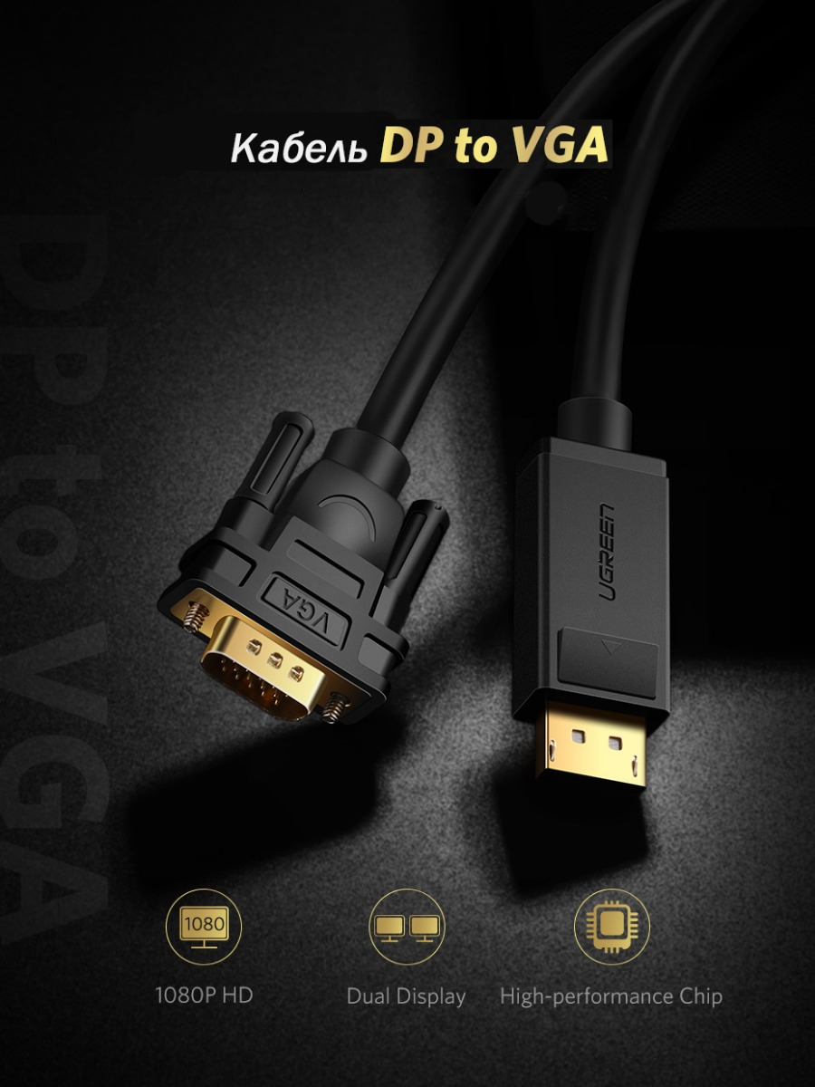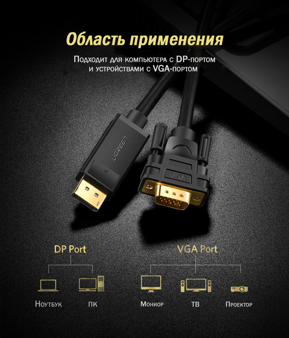 Кабель UGREEN DP-VGA поддерживает разрешения до 1920x1080 при 60 Гц (1080p Full HD), включая 720p, 1600x1200, 1280x1024 для мониторов или проекторов высокой четкости; Конвертер DisplayPort в vga может передавать видео высокой четкости с вашего компьютера на большой экран для потоковой передачи видео или игр, вы можете наслаждаться более плавным изображением без задержек, размытия или разрывов экрана.