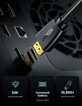 Кабель Ugreen HD118 Black длиной 2 м с интерфейсом HDMI Male to Male работает на базе технологии TMDS, что гарантирует высокоскоростную передачу аудио и видео без потери качества. Он оснащен позолоченными коннекторами и сердечником с множественным экранированием, благодаря чему достигается бесперебойность соединения.