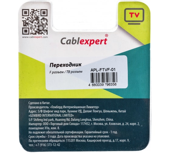 Преимущества Cablexpert F / TV APL-FTVF-01