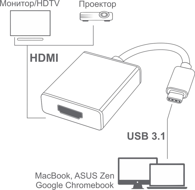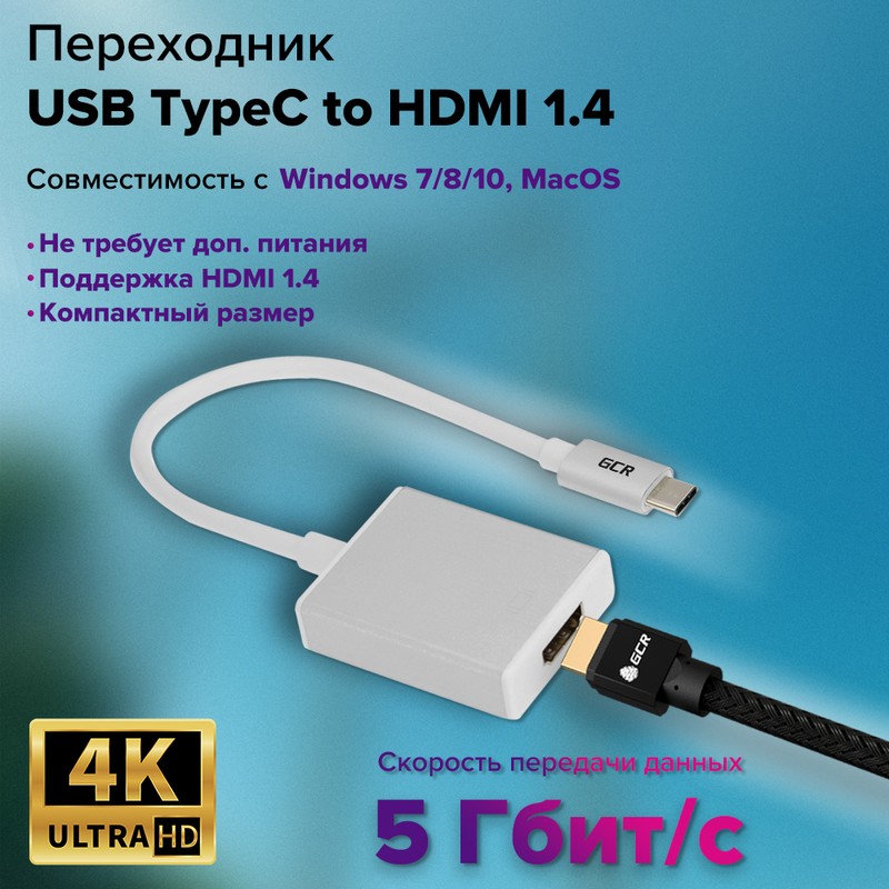 Версия кабеля v0.0 USB Type C/HDMI v1.4 Ethernet High speed